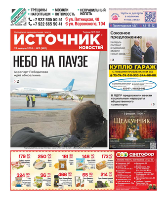 Еженедельная газета «Источник новостей» – одно из самых популярных изданий в Кировской области. Основные темы: информация о событиях в регионе, политика, культура, социальные проблемы и многое другое. В 2022 году газета признана «СМИ года» в Кировской области. Еженедельник рассчитан на широкий круг читателей.