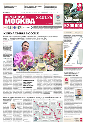 «Вечерняя Москва» — ежедневная российская вечерняя газета, старейшее из вечерних изданий в России, учрежденное в 1923 году. Выходит пять дней в неделю, кроме субботы и воскресенья. Отличается тем, что рассказывает о событиях еще не завершившегося дня. Оперативно освещает хронику и особенности жизни Москвы, охватывает все слои общества и большинство профессиональных и возрастных групп читателей.Издание представлено тремя выпусками – утренним ежедневным, вечерним (выходит три раза в неделю), еженедельным (выходит по четвергам).
