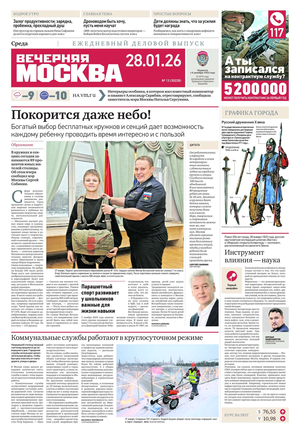 Вечером на страницах «Вечерки» появляются эксклюзивные интервью ньюсмейкеров культуры и шоу-бизнеса, репортажи журналистов по вечерней Москве, афиша нашего города. Один раз в неделю выходит специальный студенческий вечерний номер.
