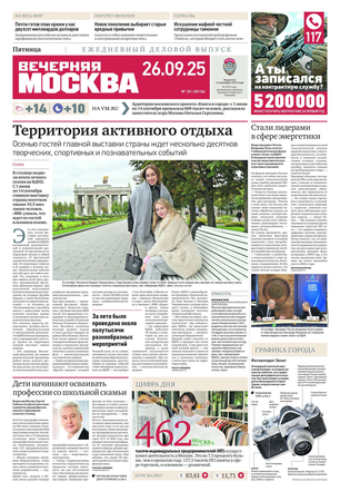 «Вечерняя Москва» — ежедневная российская вечерняя газета, старейшее из вечерних изданий в России, учрежденное в 1923 году. Выходит пять дней в неделю, кроме субботы и воскресенья. Отличается тем, что рассказывает о событиях еще не завершившегося дня. Оперативно освещает хронику и особенности жизни Москвы, охватывает все слои общества и большинство профессиональных и возрастных групп читателей.Издание представлено тремя выпусками – утренним ежедневным, вечерним (выходит три раза в неделю), еженедельным (выходит по четвергам).