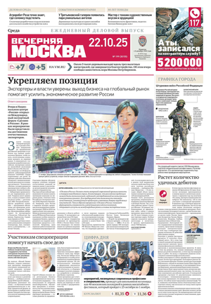 «Вечерняя Москва» — ежедневная российская вечерняя газета, старейшее из вечерних изданий в России, учрежденное в 1923 году. Выходит пять дней в неделю, кроме субботы и воскресенья. Отличается тем, что рассказывает о событиях еще не завершившегося дня. Оперативно освещает хронику и особенности жизни Москвы, охватывает все слои общества и большинство профессиональных и возрастных групп читателей.Издание представлено тремя выпусками – утренним ежедневным, вечерним (выходит три раза в неделю), еженедельным (выходит по четвергам).