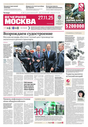 «Вечерняя Москва» — ежедневная российская вечерняя газета, старейшее из вечерних изданий в России, учрежденное в 1923 году. Выходит пять дней в неделю, кроме субботы и воскресенья. Отличается тем, что рассказывает о событиях еще не завершившегося дня. Оперативно освещает хронику и особенности жизни Москвы, охватывает все слои общества и большинство профессиональных и возрастных групп читателей.Издание представлено тремя выпусками – утренним ежедневным, вечерним (выходит три раза в неделю), еженедельным (выходит по четвергам).