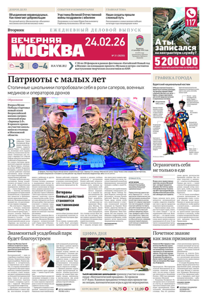 «Вечерняя Москва» — ежедневная российская вечерняя газета, старейшее из вечерних изданий в России, учрежденное в 1923 году. Выходит пять дней в неделю, кроме субботы и воскресенья. Отличается тем, что рассказывает о событиях еще не завершившегося дня. Оперативно освещает хронику и особенности жизни Москвы, охватывает все слои общества и большинство профессиональных и возрастных групп читателей.Издание представлено тремя выпусками – утренним ежедневным, вечерним (выходит три раза в неделю), еженедельным (выходит по четвергам).