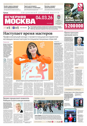 Вечером на страницах «Вечерки» появляются эксклюзивные интервью ньюсмейкеров культуры и шоу-бизнеса, репортажи журналистов по вечерней Москве, афиша нашего города. Один раз в неделю выходит специальный студенческий вечерний номер.