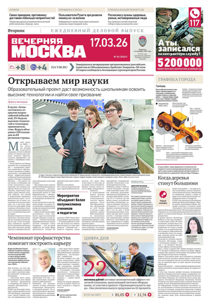 «Вечерняя Москва» — ежедневная российская вечерняя газета, старейшее из вечерних изданий в России, учрежденное в 1923 году. Выходит пять дней в неделю, кроме субботы и воскресенья. Отличается тем, что рассказывает о событиях еще не завершившегося дня. Оперативно освещает хронику и особенности жизни Москвы, охватывает все слои общества и большинство профессиональных и возрастных групп читателей.Издание представлено тремя выпусками – утренним ежедневным, вечерним (выходит три раза в неделю), еженедельным (выходит по четвергам).