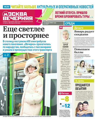 Вечером на страницах «Вечерки» появляются эксклюзивные интервью ньюсмейкеров культуры и шоу-бизнеса, репортажи журналистов по вечерней Москве, афиша нашего города. Один раз в неделю выходит специальный студенческий вечерний номер.