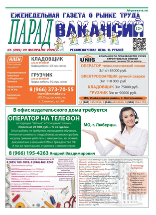 ЕЖЕНЕДЕЛЬНАЯ ГАЗЕТА О РЫНКЕ ТРУДА ПАРАД ВАКАНСИЙ