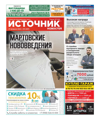 Еженедельная газета «Источник новостей» – одно из самых популярных изданий в Кировской области. Основные темы: информация о событиях в регионе, политика, культура, социальные проблемы и многое другое. В 2022 году газета признана «СМИ года» в Кировской области. Еженедельник рассчитан на широкий круг читателей.