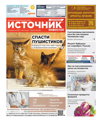 Еженедельная газета «Источник новостей» – одно из самых популярных изданий в Республике Коми. Основные темы: информация о событиях в регионе, политика, культура, социальные проблемы и многое другое. Еженедельник рассчитан на широкий круг читателей.