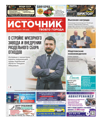 Еженедельная газета «Источник твоего города» распространяется в Кировской области. На страницах издания публикуется актуальная и полезная информация.