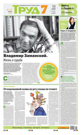 Семейный еженедельник. Последние мировые и российские новости. Интервью со звездами, новости спорта, кинематографа , культуры. Телепрограмма.