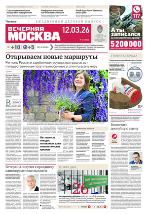 «Вечерняя Москва» — ежедневная российская вечерняя газета, старейшее из вечерних изданий в России, учрежденное в 1923 году. Выходит пять дней в неделю, кроме субботы и воскресенья. Отличается тем, что рассказывает о событиях еще не завершившегося дня. Оперативно освещает хронику и особенности жизни Москвы, охватывает все слои общества и большинство профессиональных и возрастных групп читателей.Издание представлено тремя выпусками – утренним ежедневным, вечерним (выходит три раза в неделю), еженедельным (выходит по четвергам).
