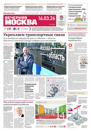 «Вечерняя Москва» — ежедневная российская вечерняя газета, старейшее из вечерних изданий в России, учрежденное в 1923 году. Выходит пять дней в неделю, кроме субботы и воскресенья. Отличается тем, что рассказывает о событиях еще не завершившегося дня. Оперативно освещает хронику и особенности жизни Москвы, охватывает все слои общества и большинство профессиональных и возрастных групп читателей.Издание представлено тремя выпусками – утренним ежедневным, вечерним (выходит три раза в неделю), еженедельным (выходит по четвергам).
