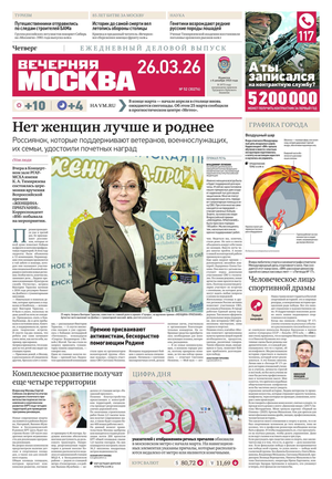 «Вечерняя Москва» — ежедневная российская вечерняя газета, старейшее из вечерних изданий в России, учрежденное в 1923 году. Выходит пять дней в неделю, кроме субботы и воскресенья. Отличается тем, что рассказывает о событиях еще не завершившегося дня. Оперативно освещает хронику и особенности жизни Москвы, охватывает все слои общества и большинство профессиональных и возрастных групп читателей.Издание представлено тремя выпусками – утренним ежедневным, вечерним (выходит три раза в неделю), еженедельным (выходит по четвергам).